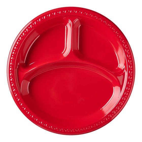 (2 pack) Great Value Everyday Disposable Plastic Compartment Plate, Red, 10.25", 25 Count