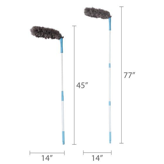 - Extendable microfiber duster for cleaning high ceilings, ceiling fans, and windows