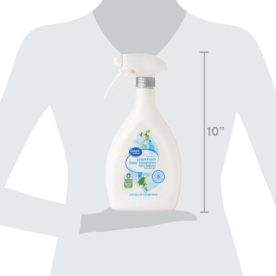 Bring the lovely scent of fresh linen to your home with Great Value Linen Fresh Fabric Refresher. There's nothing better than the aroma of clean laundry drying on a clothesline, ruffled by summer breezes. This powerful fabric refresher sweeps out nasty odors from pets, kitchen waste, and trash, and adds a refreshing hint of sun-warmed linen to your rooms. Lightly mist smelly fabrics and let this odor eliminator do the rest of the work. Keep your surroundings smelling like a dream with Great Value Linen Fresh Fabric Refresher.
