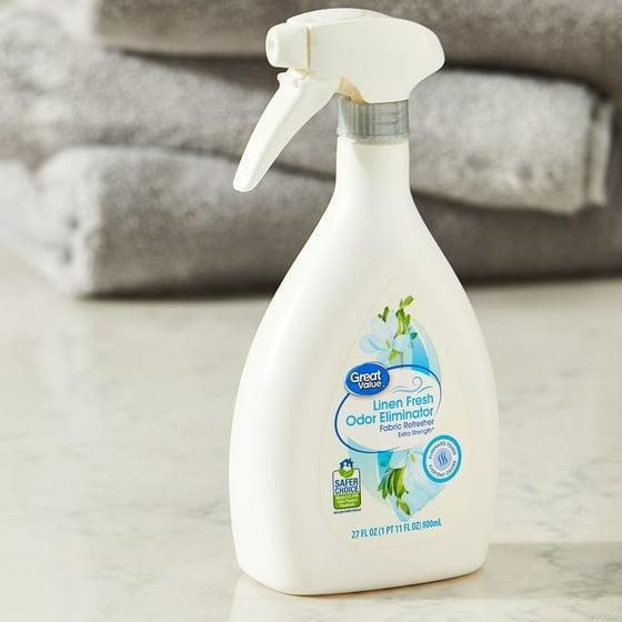 Bring the lovely scent of fresh linen to your home with Great Value Linen Fresh Fabric Refresher. There's nothing better than the aroma of clean laundry drying on a clothesline, ruffled by summer breezes. This powerful fabric refresher sweeps out nasty odors from pets, kitchen waste, and trash, and adds a refreshing hint of sun-warmed linen to your rooms. Lightly mist smelly fabrics and let this odor eliminator do the rest of the work. Keep your surroundings smelling like a dream with Great Value Linen Fresh Fabric Refresher.