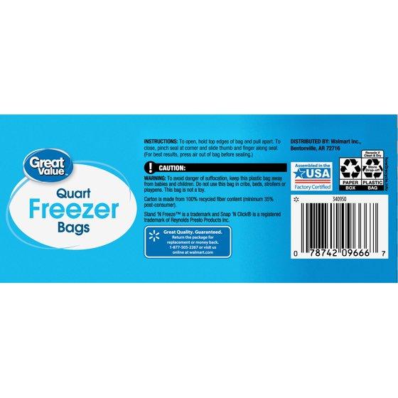 Great Value Freezer Guard Double Zipper Freezer Bags, Quart, 75 Count