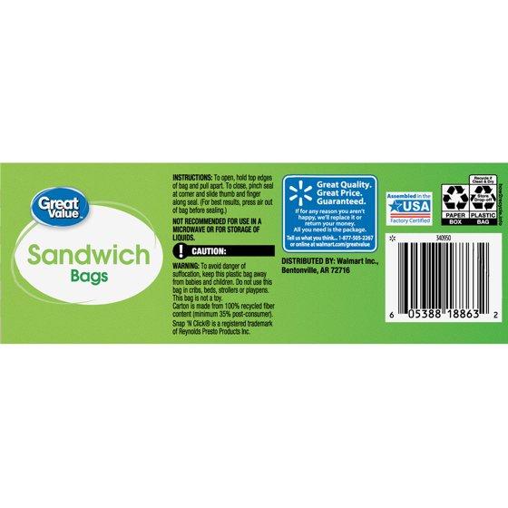 - Each box contains 50 Sandwich Great Value Storage bags