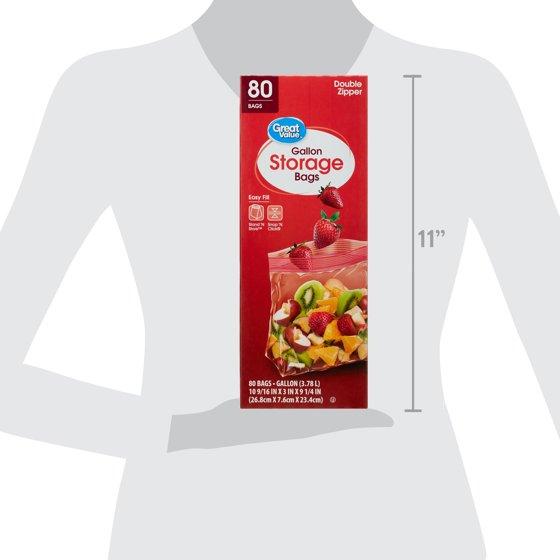 Great Value Fresh Seal Double Zipper Storage Bags, Gallon, 80 Count