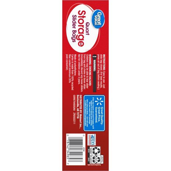 - Great Value Fresh Seal Quart Storage Slider Zipper Bags, 25 Count