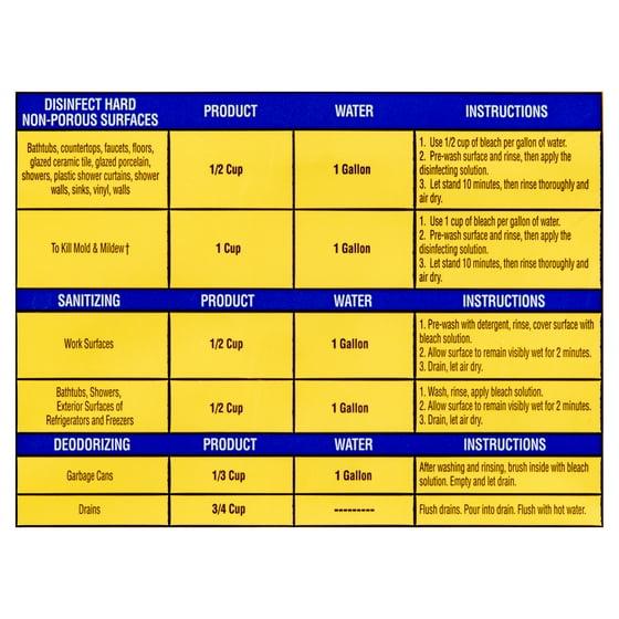 121oz Great Value Lemon Scented Cleaning Bleach is great for a cleaner, fresher household, and laundry. It is designed to work with most standard HE washers and will keep your whites bright as it fights tough to remove stains. It is also effective for cleaning common household surfaces such as bathrooms, kitchen surfaces, dishes and sinks. This bleach is also effective in cleaning and deodorizing pre-cleaned toilet bowls. With a more concentrated formula, you get the same number of loads in a smaller bottle. Clean away the messes and keep your home clean and deodorized with Great Value Cleaning Bleach.