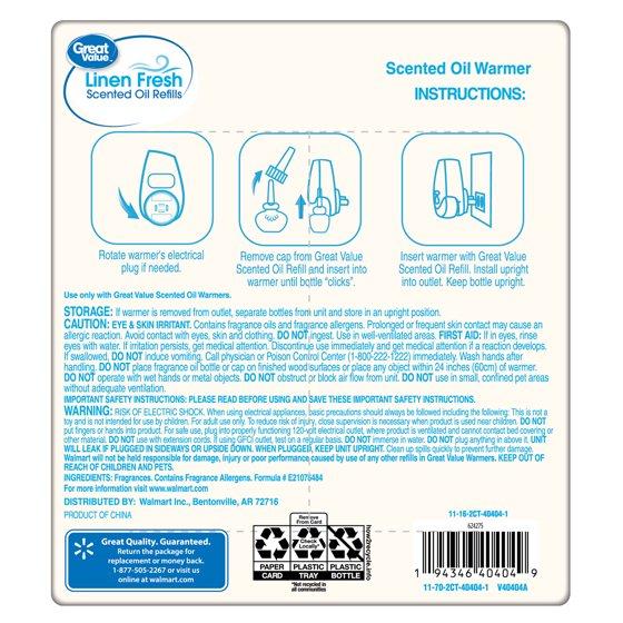 - Simple and Mess-Free Use: Easy to install—just remove the cap, insert into your Great Value warmer, and plug in to enjoy effortless fragrance.