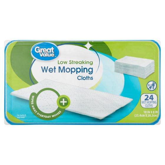 - Great Value Low Streaking Wet Mopping Cloths, 24 Count