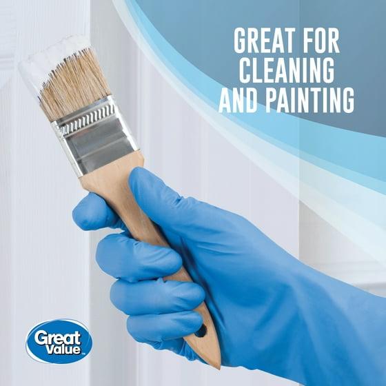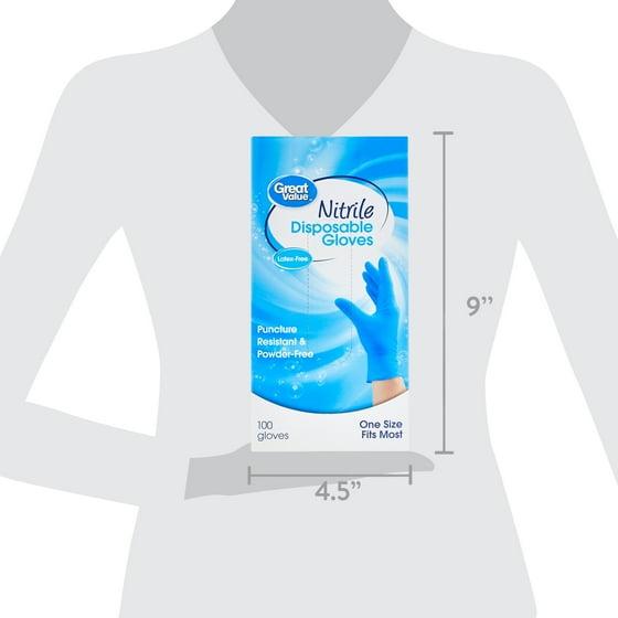 Great Value Disposable Nitrile Gloves are a multi-purpose, durable set of gloves that are puncture and tear resistant. These gloves are latex-free and powder-free, and have a lightly textured grip for improved dexterity. Use them for activities that require protection for your hand, like baby care, pet care, painting, cleaning, gardening and more. They are designed for quick donning and removal, and they come in a single size that fits most hands. They come in a pack of 100 so that you always have a pair available when you need it. With these disposable gloves, you can enjoy a comfortable protection for your hands while you go about your daily tasks.
