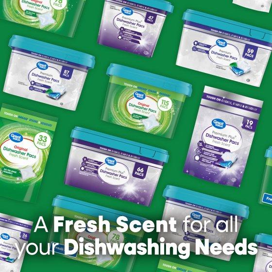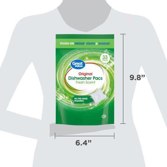 - Great Value Original Dishwasher Pacs, Fresh Scent, 33 Count