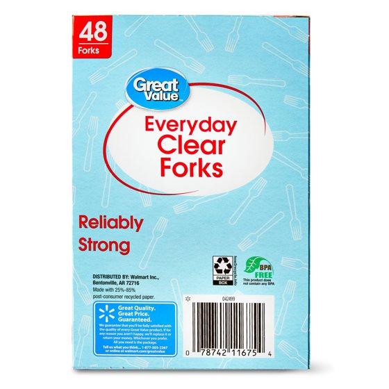 Great Value Plastic Everyday Clear Forks, 48 Count