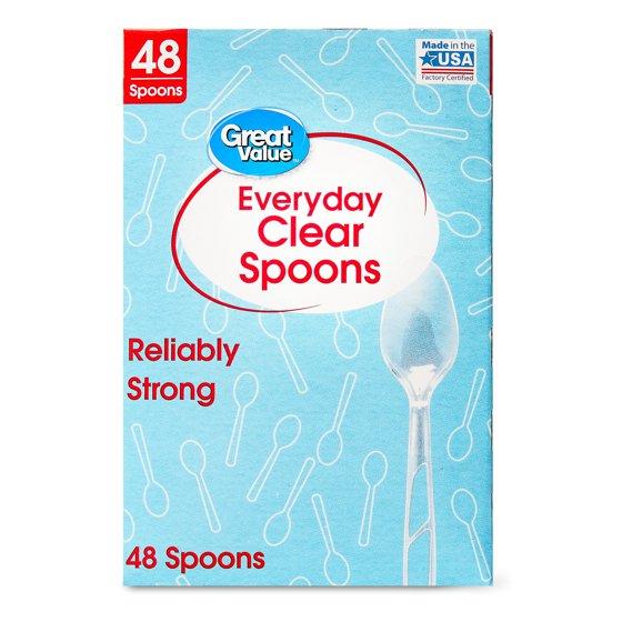 Great Value Plastic Everyday Clear Spoons, 48 Count