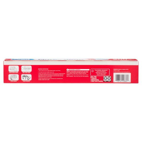 The Great Value Plastic Wrap makes an excellent addition to any kitchen. Great Value Plastic Wrap is a quality product that provides you with a quick and reliable way to wrap and store your food and leftovers for later. It comes in a 200 sq ft stretch wrap roll and is BPA-free, completely microwavable and clings to the outer surface of the vessels or containers that it is put on. The Great Value Plastic Wrap packaging comes with locking ends to keep the roll in place while dispensing and has a plastic cutter that helps cut the plastic wrap in required sizes.