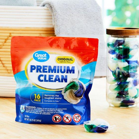 - Great Value Premium Clean Laundry Pacs Original Scent, 16 Count