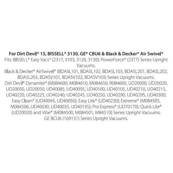 - Fits Bissell Easy Vacs (2317, 3103, 3120, 3130); Power Force (23T7) Series Upright Vacuums.