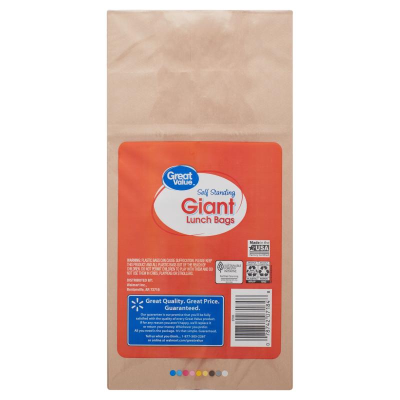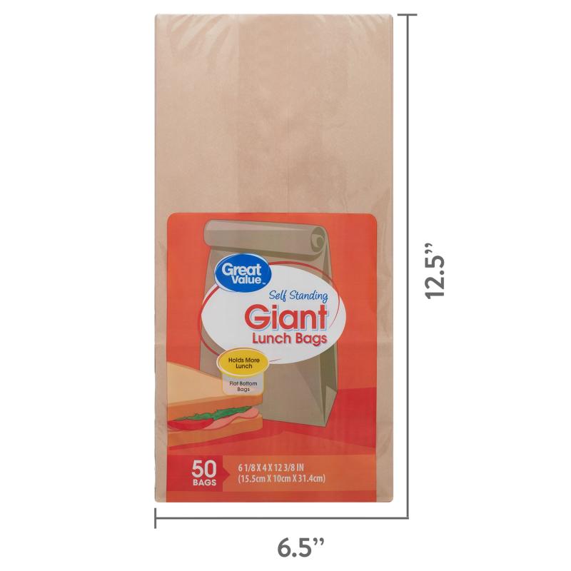 - Great Value Self Standing Giant Lunch Bags, 50 Count