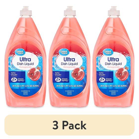 (3 pack) Great Value Soft & Smooth Ultra Dish Liquid, Pomegranate, 40 fl oz