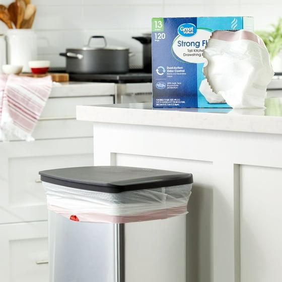 Great Value Strong Flex 13-Gallon Drawstring Tall Kitchen Trash Bags, Fresh Scent, 120 Bags