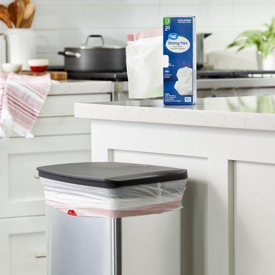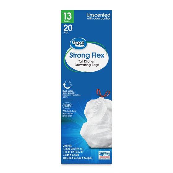 - Great Value Strong Flex Tall Kitchen Drawstring Bags, Unscented, 13 Gallon, 20 Count