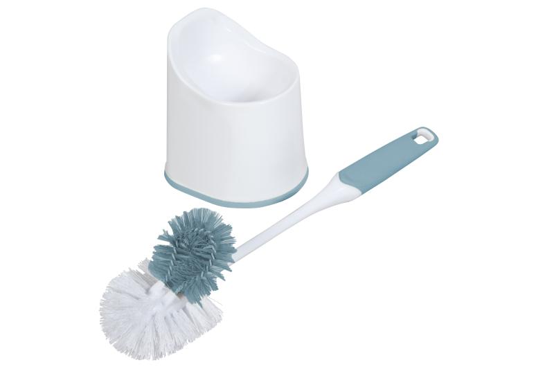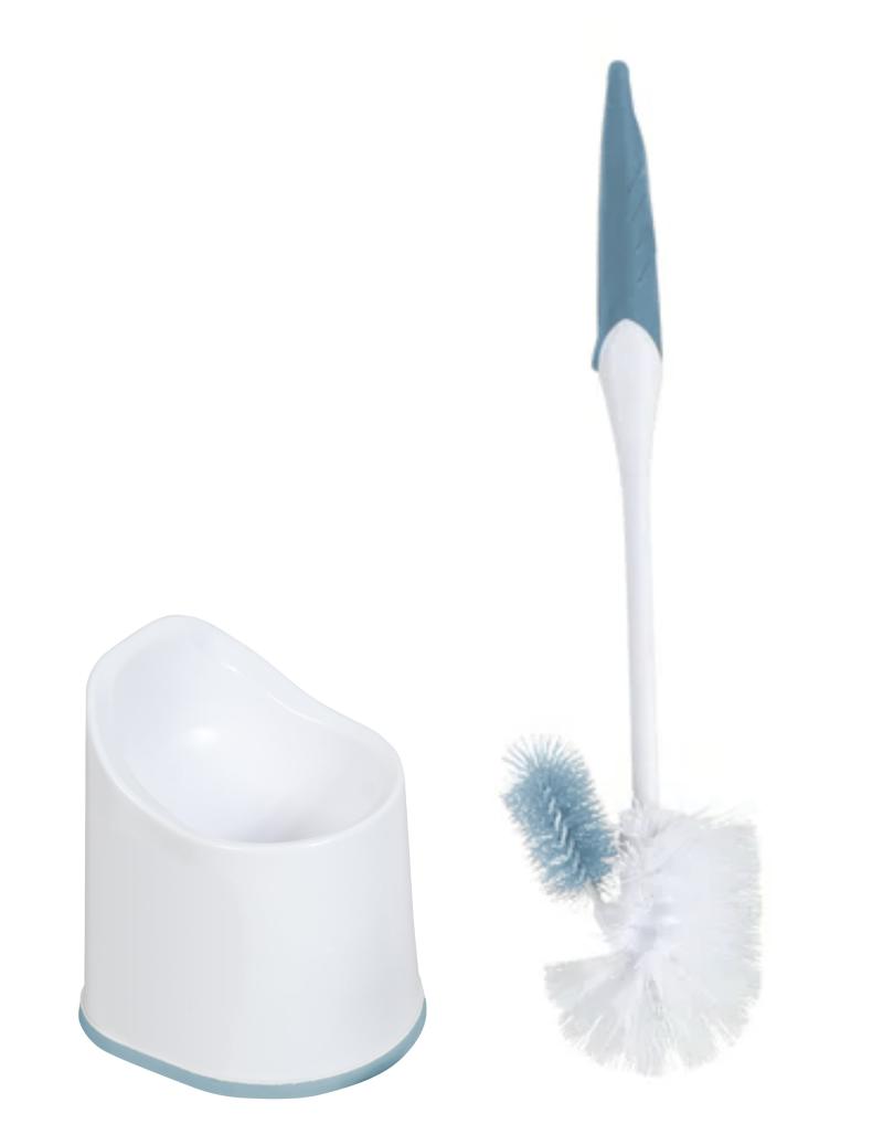 • Attached blue brush is perfectly angled to easily reach under the toilet rim
