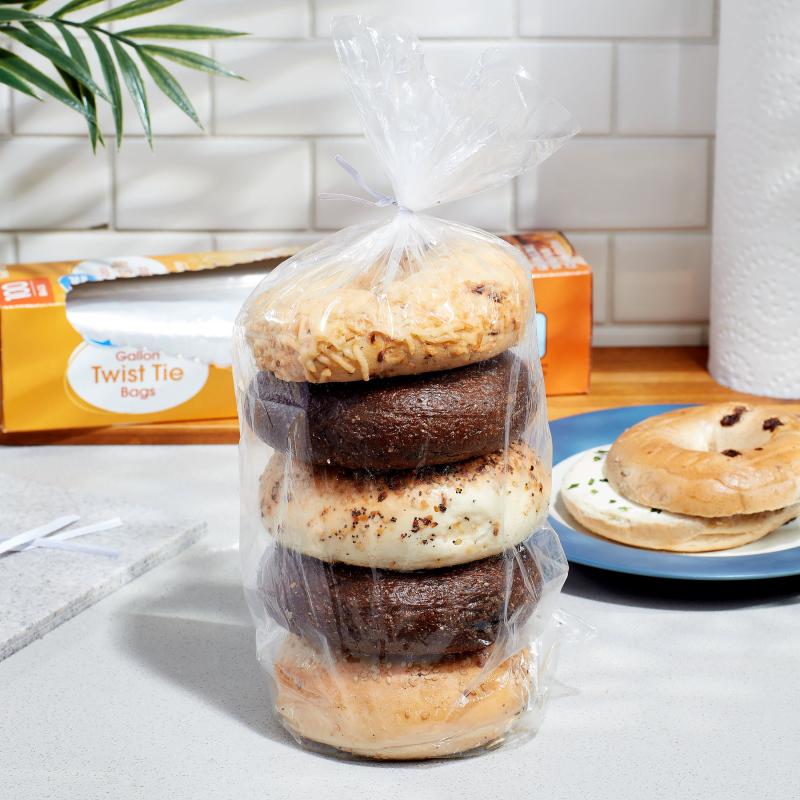 Store your food and organize your kitchen with these Great Value Twist Tie Storage Bags. They provide a quality way to store all kinds of foods and are ready to use when you need them. Each bag comes with a twist tie that is soft enough to twist easily and firm enough to hold its shape to lock in the freshness of the items stored inside. They are perfect for keeping bread and rolls fresh, marinating meat for the grill and provide a maintaining solution for crumbling cookies and crackers. Add a ribbon over the twist tie to turn treats like cookies and candy into a quick gift. It is easy to carry while traveling and can help keep your toiletries, electronics and accessories organized and protected. This pack comes with 100 gallon-size Great Value Twist Tie Storage Bags, meaning that each package will offer long-lasting use.