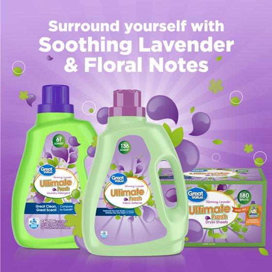 Great Value Ultimate Fresh Dryer Sheets, Blooming Lavender, 180 Count, Compare to Gain®