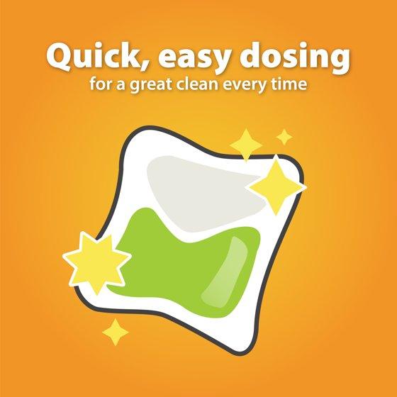 Great Value Original Clean Ultimate Fresh Laundry Detergent Pods wash your clothes and linens with a great clean and leave them with a great scent! The laundry detergent pods are safe for all types of washing machines and their single-use design makes it easy to be sure you're using the right amount of detergent per wash every time. Each of the 14 pods are made with one wash's worth of liquid laundry detergent with a delightful Original Clean scent packed inside a dissolvable film. With its easy tear-open packaging that conveniently snaps closed between uses, this bag of detergent pods offers you a more accessible way to wash your clothes versus using a heavy jug. Keep your family's clothes, bedding, towels, and other washables fresh, clean, and smelling and feeling fresh with Great Value Original Clean Ultimate Fresh Laundry Detergent Pods.