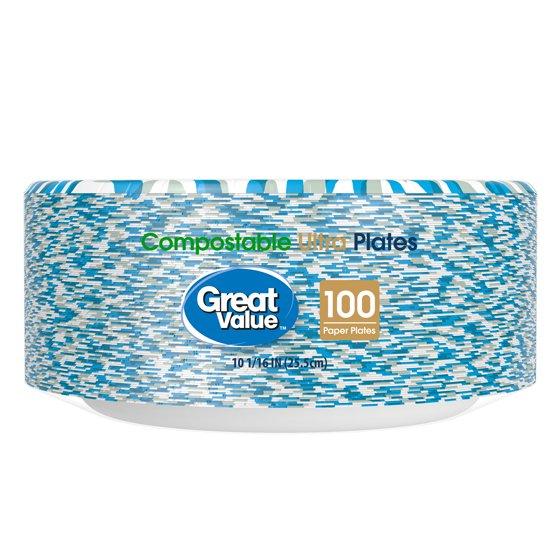 - Great Value Ultra Dinner Plates are backyard and commercially compostable