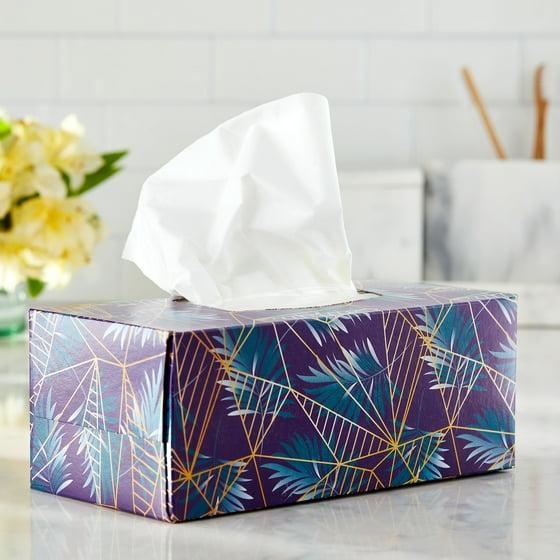 Great Value Ultra Soft Facial Tissues are the perfect solution to a runny nose. These ultra-soft facial tissues are gentle on your skin and are strong enough to hold up while you blow your nose and cover all your sneezes and sniffles. These boxes of 3-ply facial tissues comes with pleasant designs that will look great all over the house. Each carton contains 120 luxurious tissues per pack. These tissues are great for bathrooms, bedrooms, kitchens, living rooms and your office. Next time you feel that you may be getting a cold or just simply need to blow your nose, use Great Value Ultra Soft Facial Tissues.