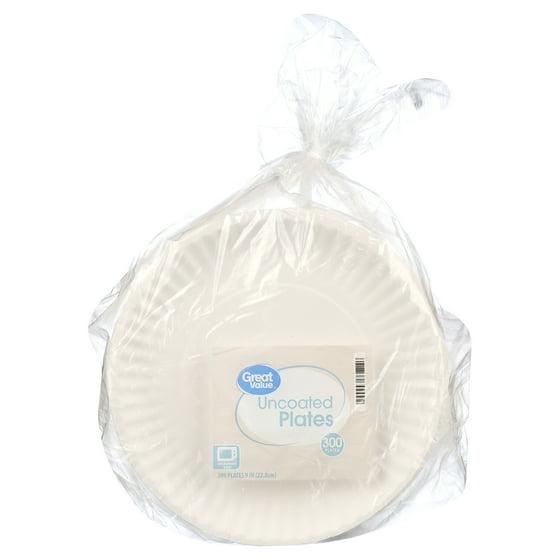 - Great Value Uncoated, Microwave Safe, Disposable Paper Plates, 9 in, White, 300 Count: