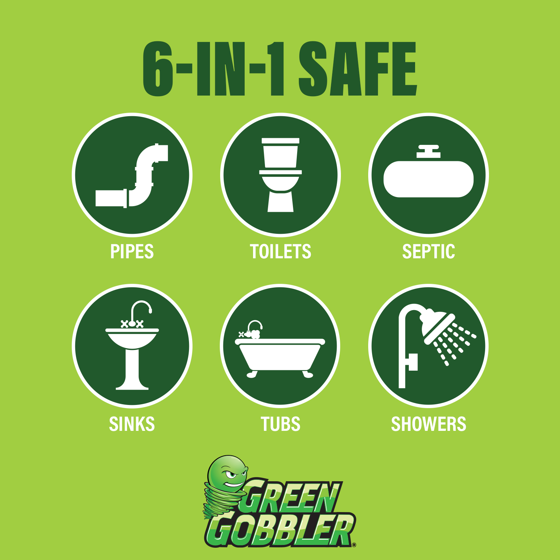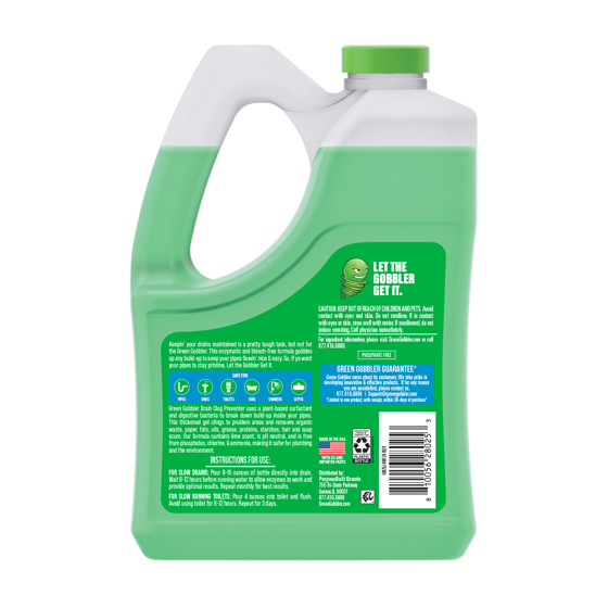 - PREVENT TOUGH CLOGS: Green Gobbler's enzyme enhanced formula removes hair, organic matter, paper, soap scum, fats, oils, grease, proteins and starches to help prevent clogs before they become a problem.