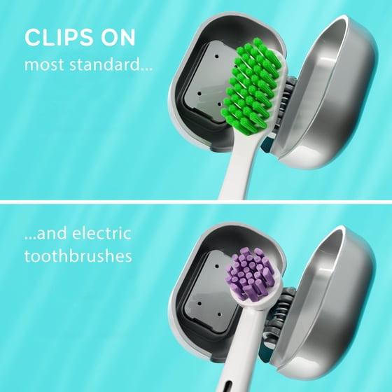 - Clips On most standard and electric toothbrushes
