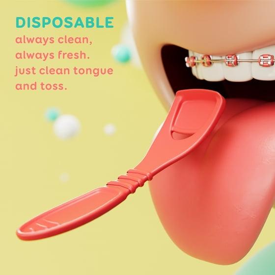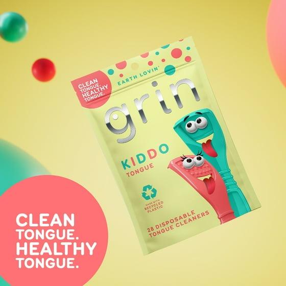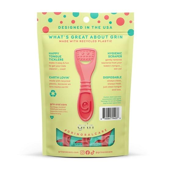 Grin Kiddo Tongue Cleaner - 28 Ct - Children’s Disposable Tongue Scraper, Made with Recycled Plastic, Gently Removes Bacteria to Help Keep Kids Healthy