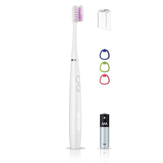 GUM Sonic Battery Powered Toothbrush, Tapered Bristles Clean Below the Gumline, White, 1 Count.
