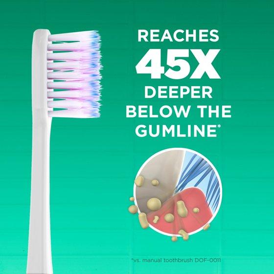 - DEEP CLEAN BRISTLES: Bi-level tapered bristles have been proven to reach 45x deeper below the gum line, than leading manual toothbrush. * *DOF-0011