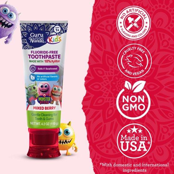 Gurunanda Kid's Toddler Toothpaste with Xylitol - Fluoride-Free - Mixed Berry Flavor - 4.2 oz