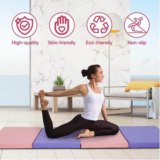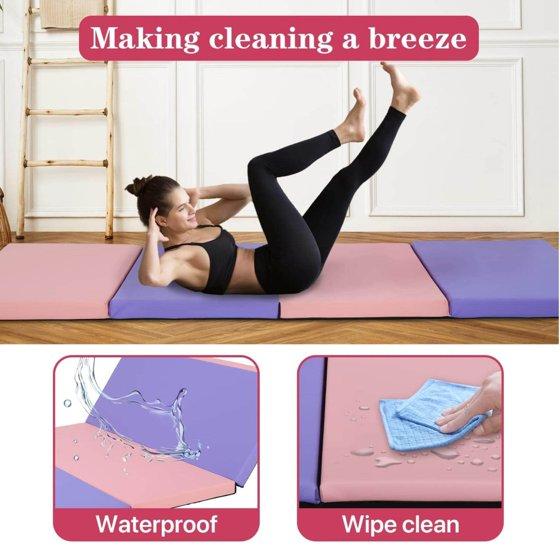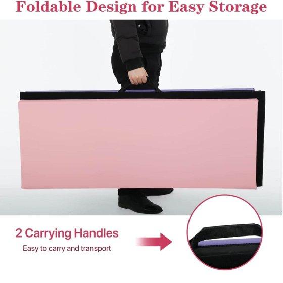 Gymnastics Mat 6x4x2 Folding Tumbling Mat 2” Thick Portable PU Leather Gym Mat with Carrying Handles for Kids Adults, 4-Folding, Mix Color