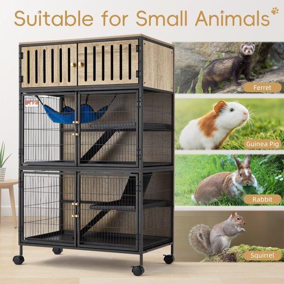 - 【Upgrade Spacious Living Area】The upgrade metal small animal cage boasts high strength and rust-resistance and innovative wood materials to make guinea pig cages look more beautiful. This ferret nation cage provides your pet with a spacious activity area. Multiple levels and platforms that provide various areas for small animals to play, exercise, and relaxation. It's not like a cage, it's more like a villa for your pets.
