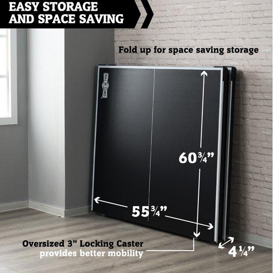 - Space Saving Design: Easily store the table when not in use - folds into two halves. Folded size: 60.75" × 55.75" × 4.25" (L×W×H).