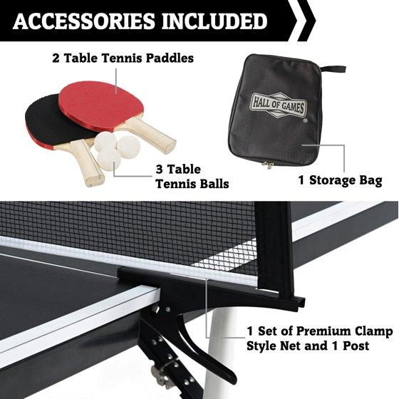 Hall of Games Official Size Ping Pong Table Tennis Table, Space Saving No Assembly Design with Accessories, Black/White