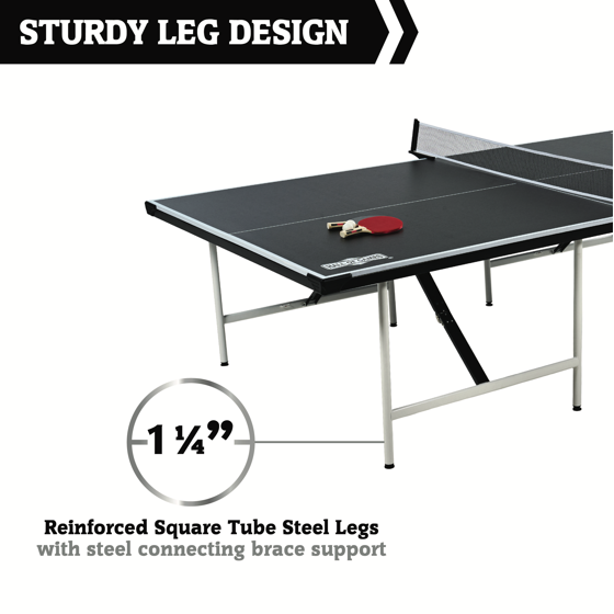 - Official Tournament Size: 9 ft x 5 ft table with a 5/8” (15mm) top for true bounce and competitive play.