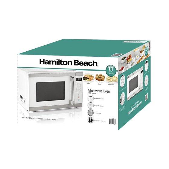 Hamilton Beach 1.1 Cu. ft. Countertop Microwave Oven, 1000 Watts, White Stainless Steel