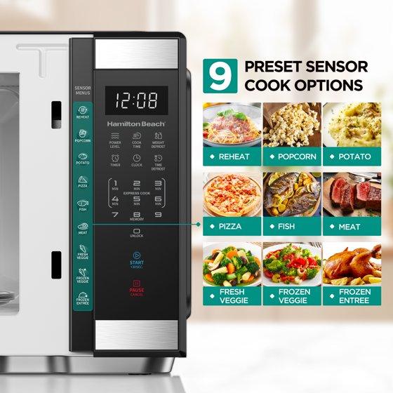 Hamilton Beach 1.1 cu ft Countertop Microwave Oven, Black and Stainless Steel