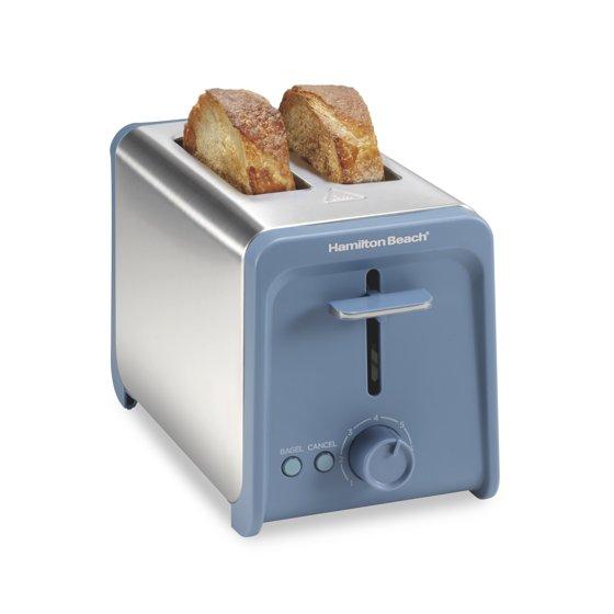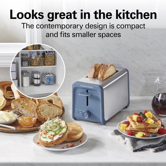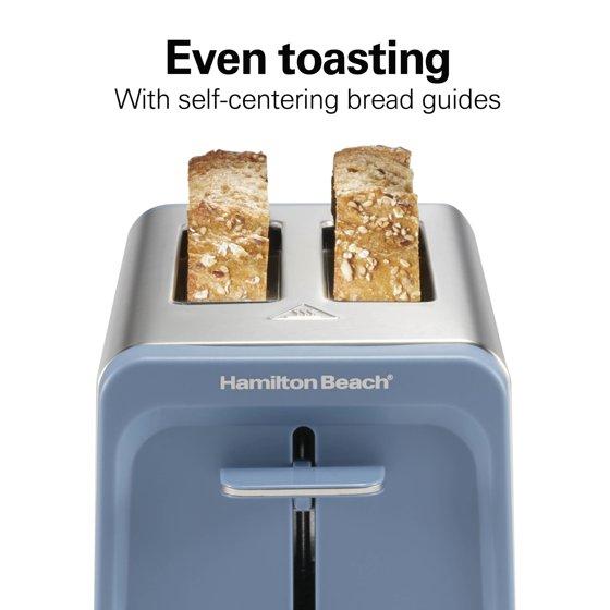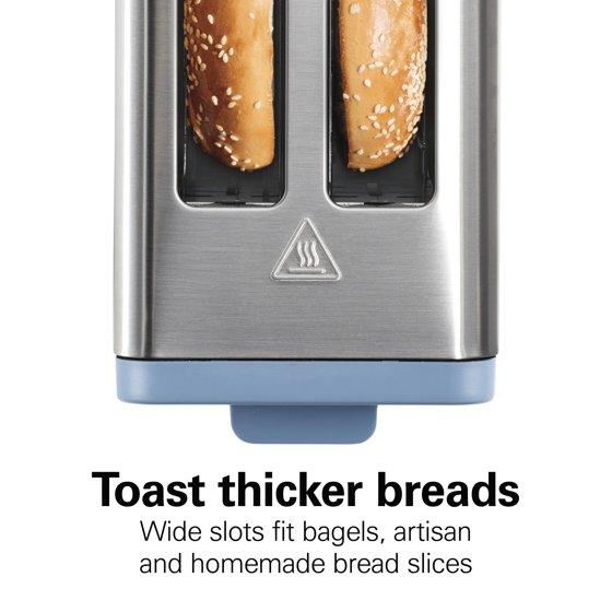 Hamilton Beach Contemporary 2 Slice Toaster with Wide Slots, Bagel Function, Toast Boost, Auto Shutoff, Steel Blue