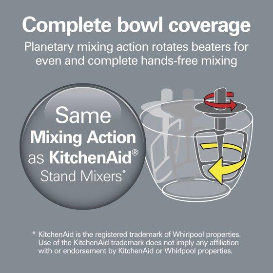 - COMPLETE BOWL COVERAGE: Planetary mixing action rotates attachments around the 4 quart stainless steel bowl for even, hands-free mixing.
