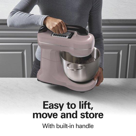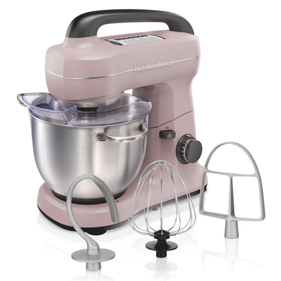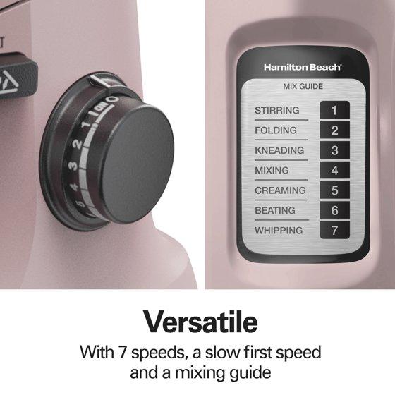 - Hamilton Beach 4 Quart Stand Mixer for Kitchen, 7 Speeds, Tilt-Head, Dough Hook, Whisk & Flat Beater, Rose
