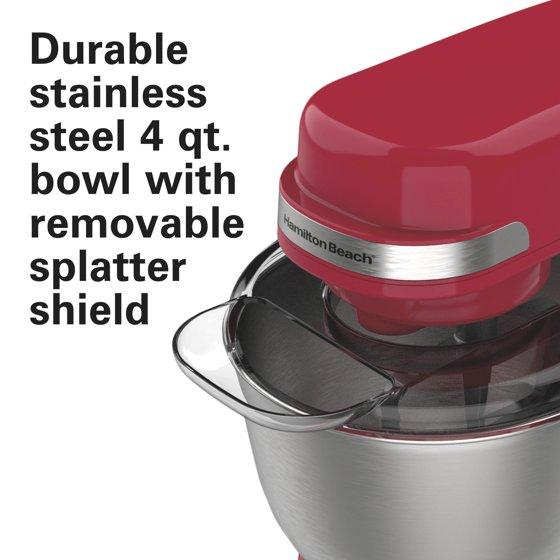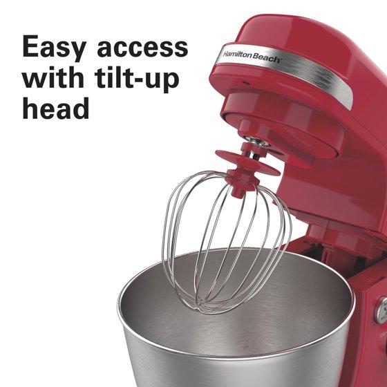 - Hamilton Beach 4 Quart Stand Mixer for Kitchen, 7 Speeds, Tilt-Head, Dough Hook, Whisk & Flat Beater, Red