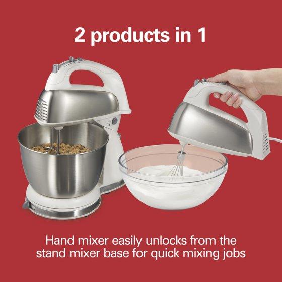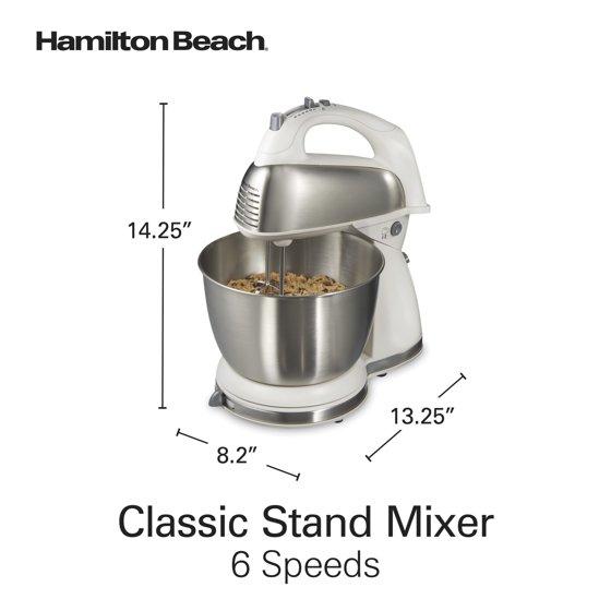 - Hamilton Beach Classic Stand and Hand Mixer Combo for Kitchen, 4 Quart, 6 Speeds with Quick Burst, White