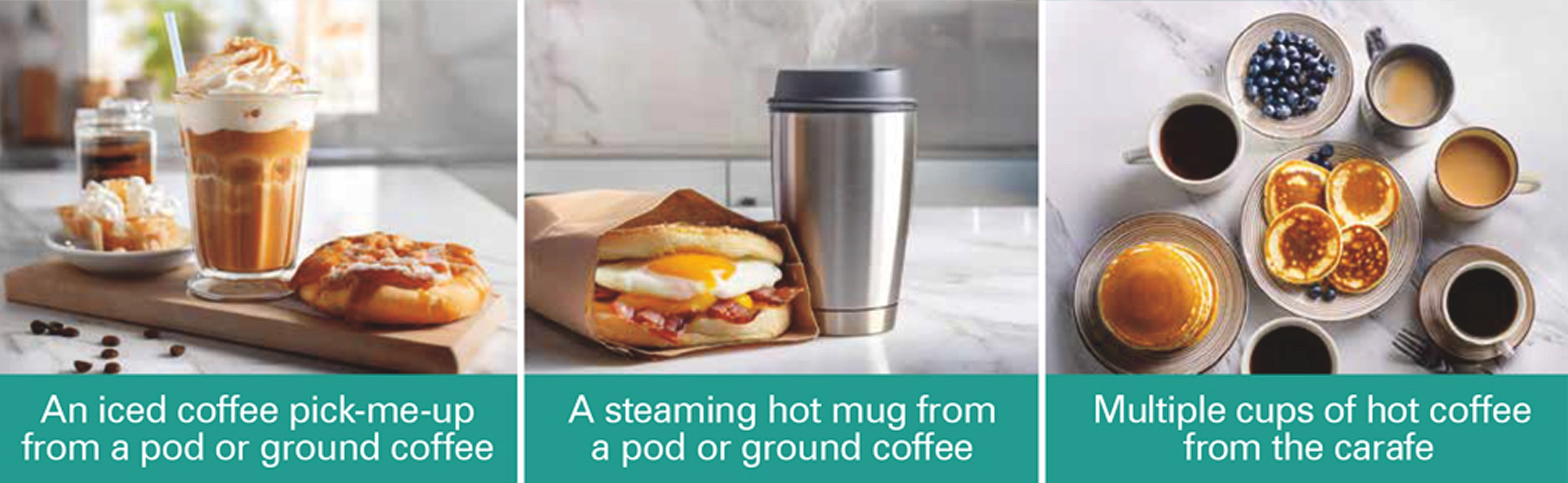 • 5 WAYS TO BREW: Brew single-serve hot or iced coffee with a K-Cup* pod up to 10 oz. or grounds up to 14 oz., or brew up to 12 cups in the carafe with ground coffee.