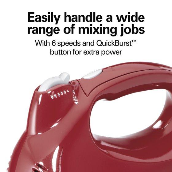 - EASILY HANDLE A WIDE RANGE OF MIXING JOBS: Go from slowly folding ingredients all the way up to whipping at top speed. This hand mixer has 6 speeds to cover every mixing task and a QuickBurst button for an extra burst of power at any speed.