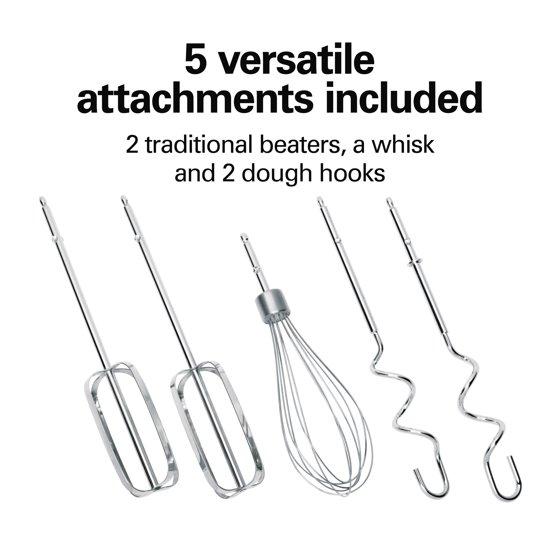 - VERSATILE STAND MIXER ATTACHMENTS: The 2 traditional beaters, a whisk and 2 dough hooks take you from mixing cake batter and cookie dough to whipping cream and kneading pizza dough. The stand mixer attachments are dishwasher safe.